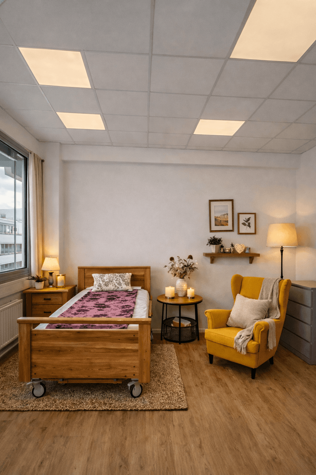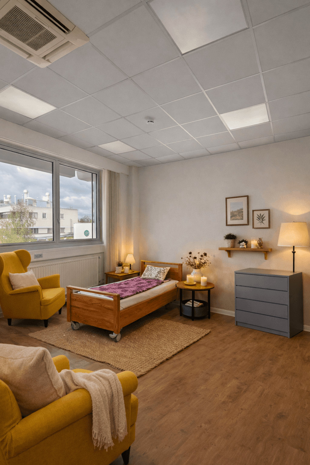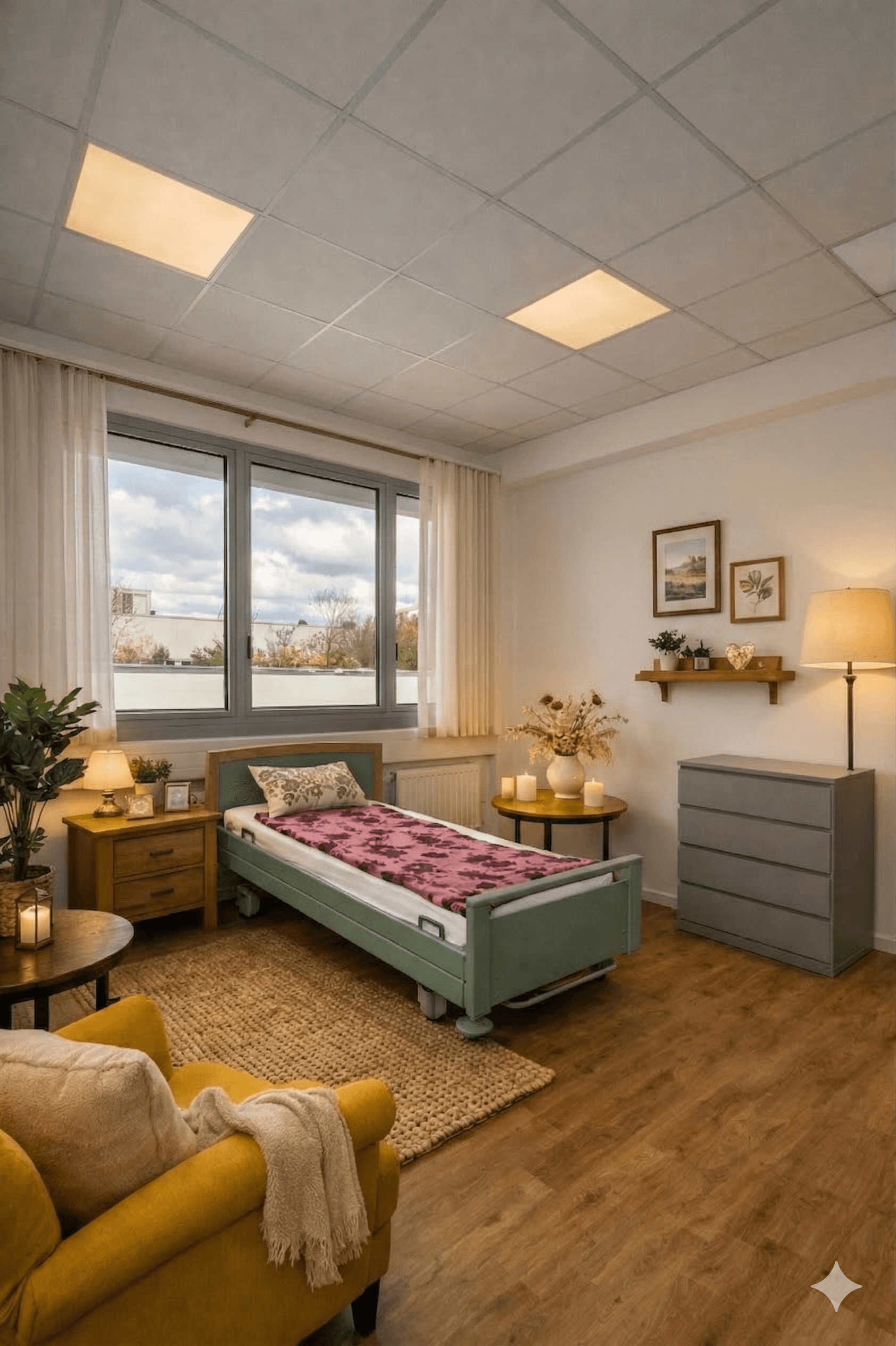 Eine helle Umgebung, die Geborgenheit vermittelt und dennoch professionelle Pflege ermöglicht.